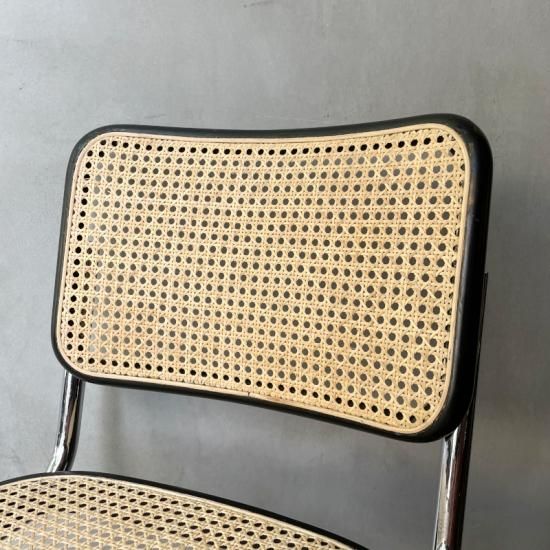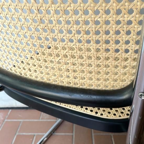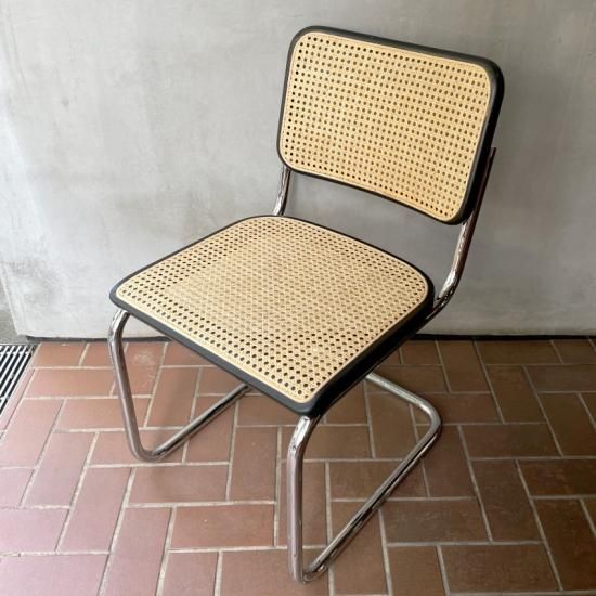 バウハウスで学び活躍したマルセル・ブロイヤーが1929年にデザインしたカンティレバー(構造)チェアの名作、トーネット社製S32の1996年代製のヴィンテージ。カンティレバー特有の軽くしなる座り心地はダイニングやデスク用のチェアに最適、近年人気が再燃しているオススメの1脚です。フレームに小傷はあるものの、ラタンは張替られておりとても綺麗な状態です。