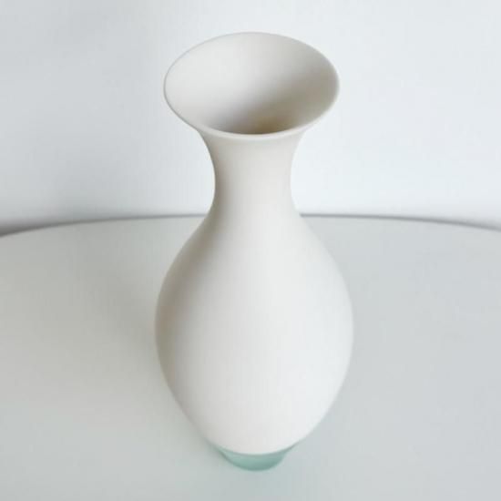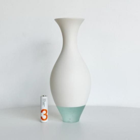 透明感のあるクリーム色の磁器と、やわらかな印象のガラスを組み合わせた、彼女を代表するシリーズです。